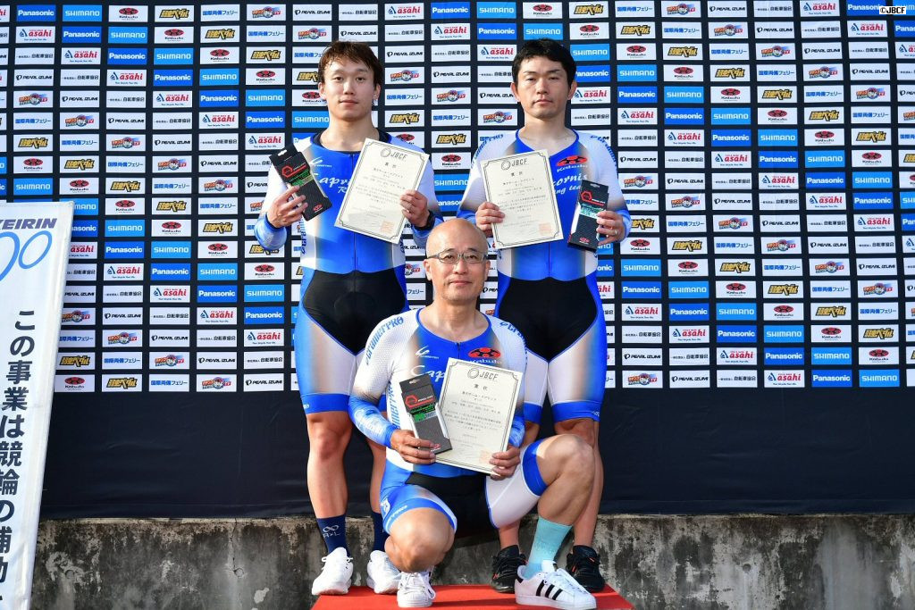 2位 湾岸サイクリング・ユナイテッド(佐藤 竜也、山岡 翔平、松村 尚毅) 1秒22分904