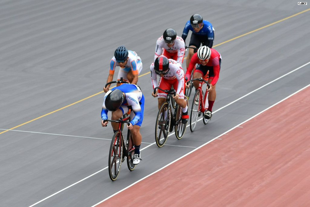 最終種目のポイントレースは、橋川 楽(佼成学園)が集団から抜け出し初回ポイントを奪取、その後は有力選手4名を中心にポイントリーダーが目まぐるしく変わる展開になり男子オムニアムの最終結果は、仙洞田が155pで優勝、1p差で小森が2位、植益はポイントレースを1着でゴールして3位になった。