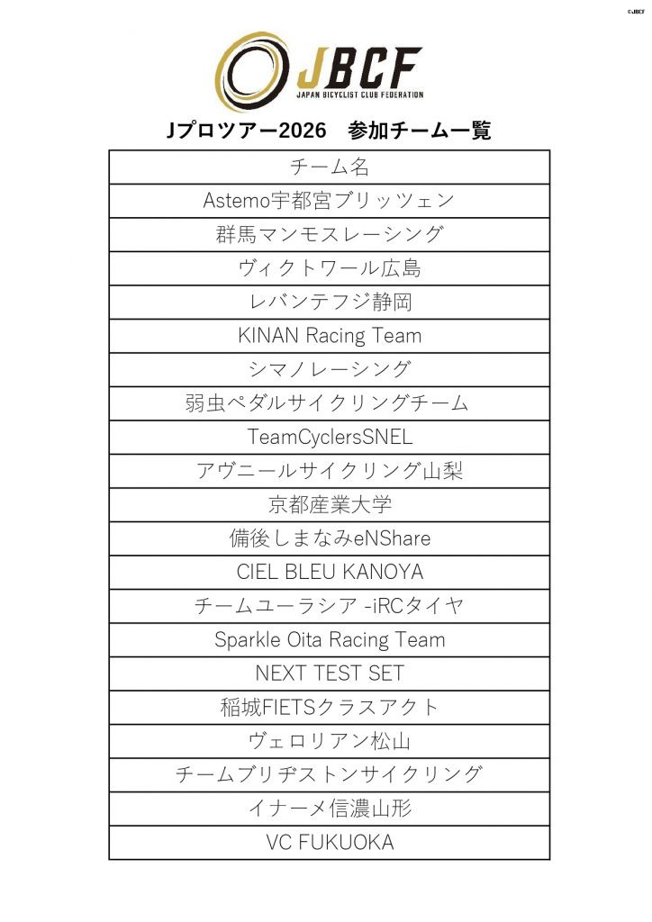 『Jプロツアー 2026』の参加チームが決定致しました。