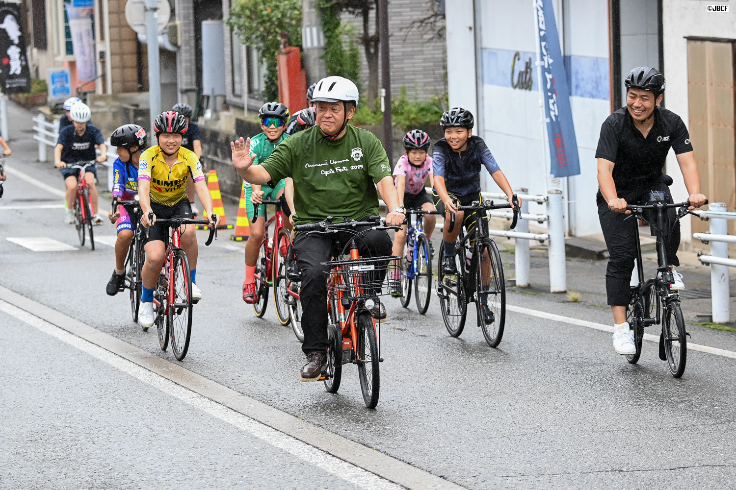 中間スプリント賞 表彰 プレゼンターは新潟弥彦ジュニアサイクルクラブとスキーチーム・ジームスレーシングのメンバー