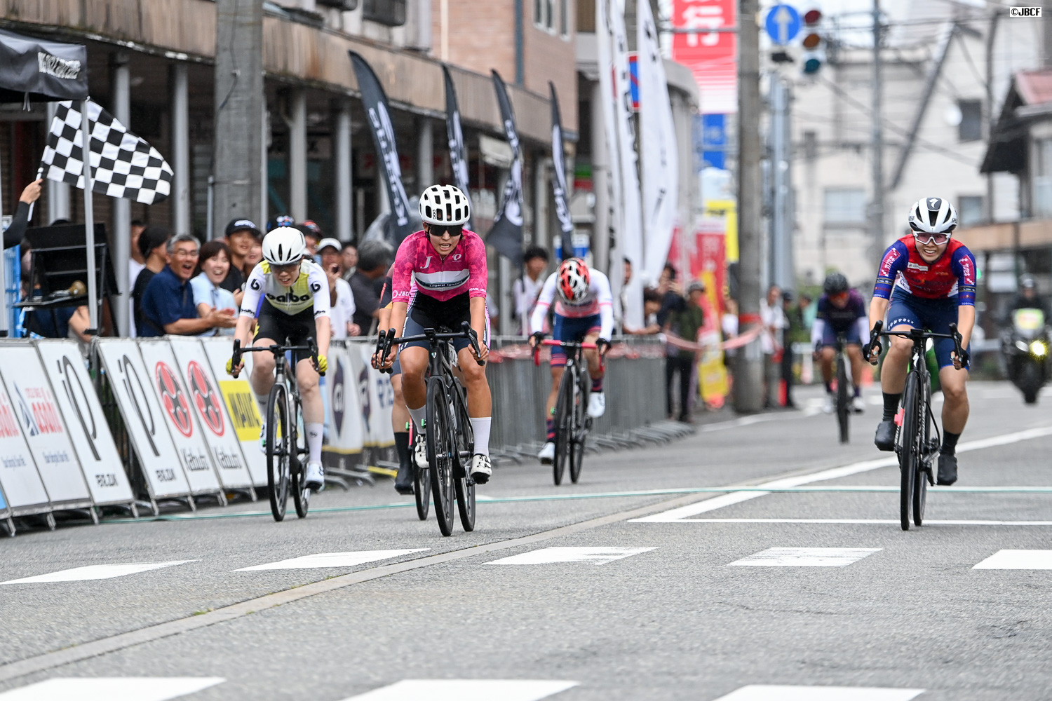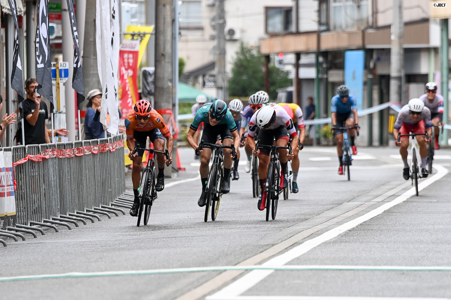 レオネル・キンテロ(ヴィクトワール広島)、織田聖(マトリックスパワータグ)、梅澤幹太(チームブリヂストンサイクリング)がスプリント勝負