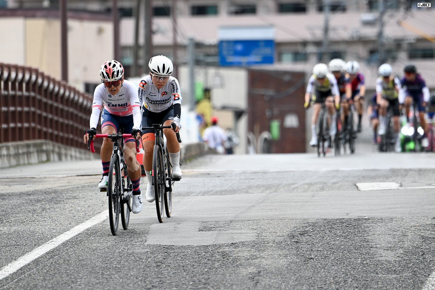 F レース序盤、杉浦佳子(TEAM EMMA Cycling)と武田和佳奈(Promotion x Athletes CYCLING)が先行