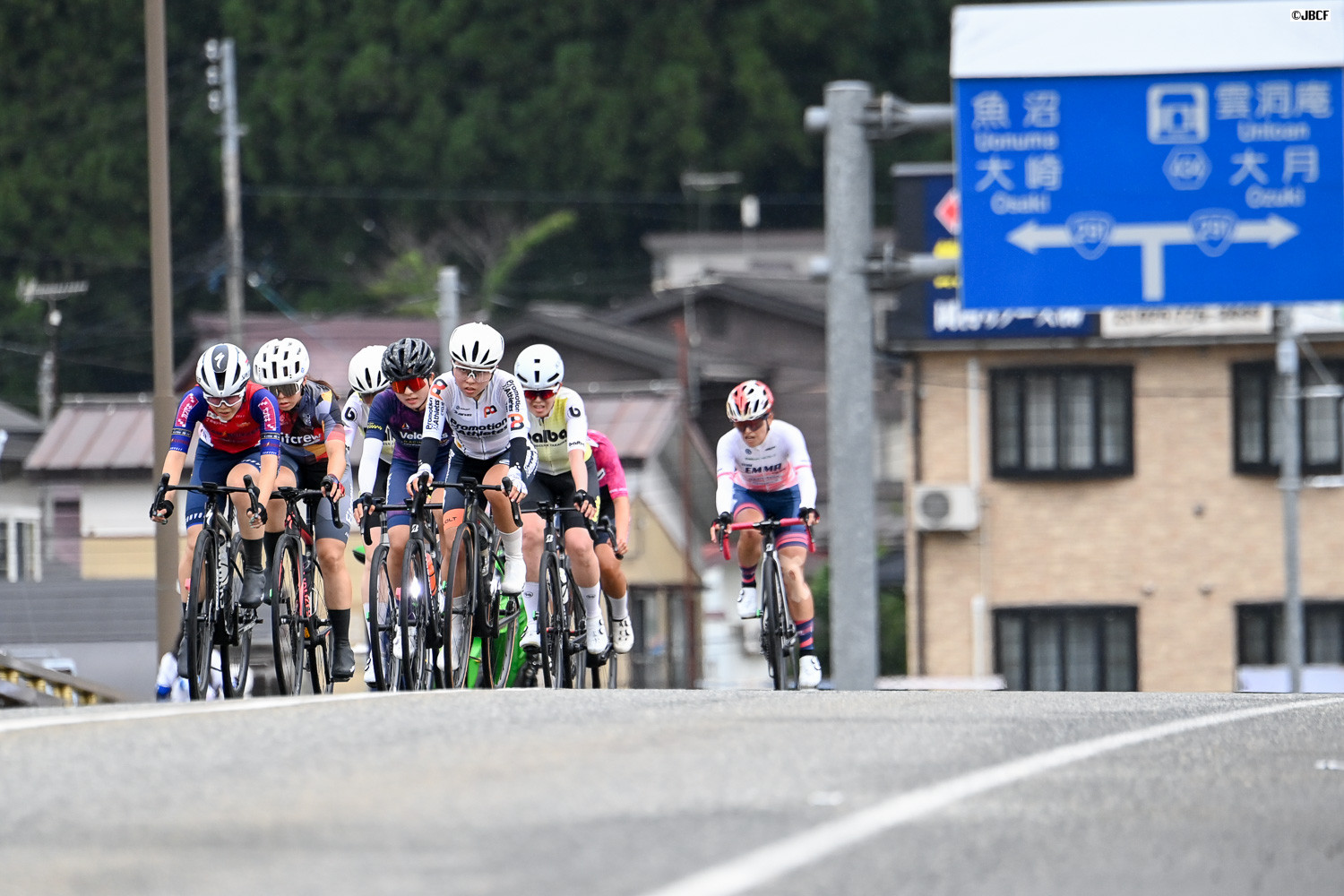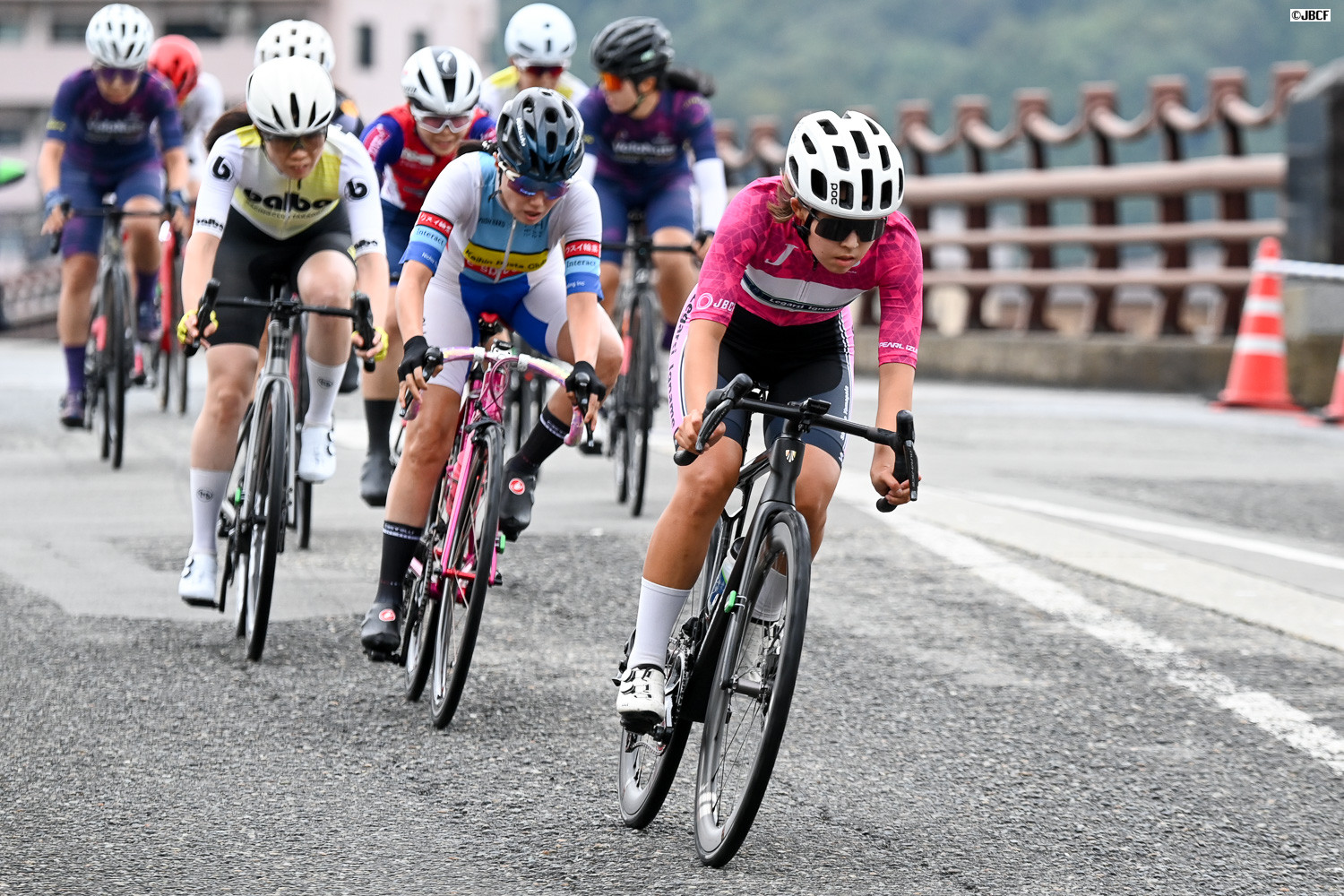 レース終盤、ヴィクトワール広島が集団を牽引するも、先頭集団との差は開き続ける