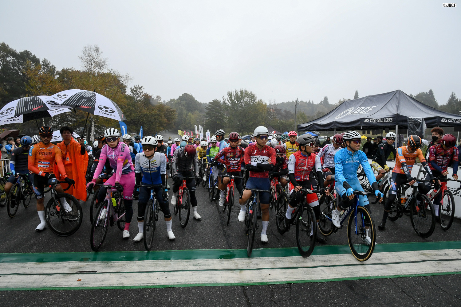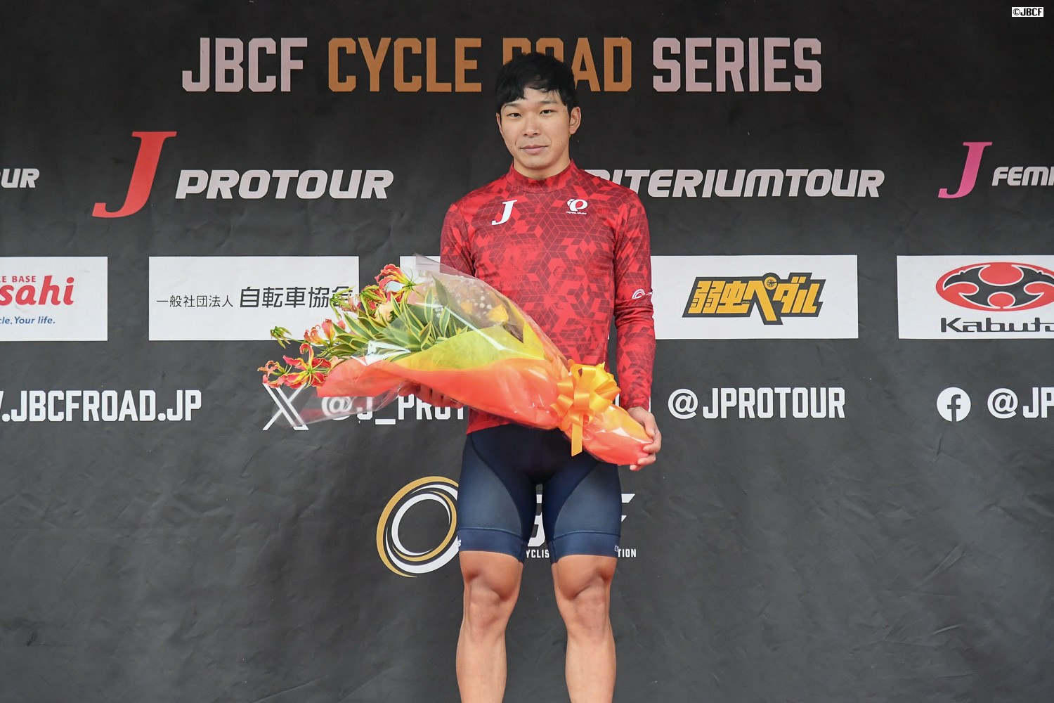 Jプロツアー最終戦のスタートラインは、リーダージャージの2人と今シーズンで引退する選手が最前列に並んだ