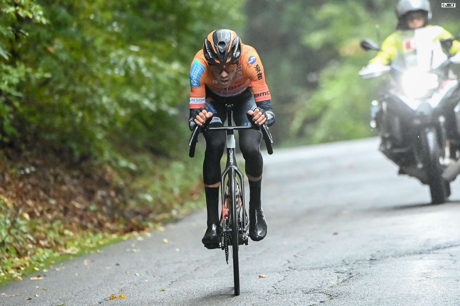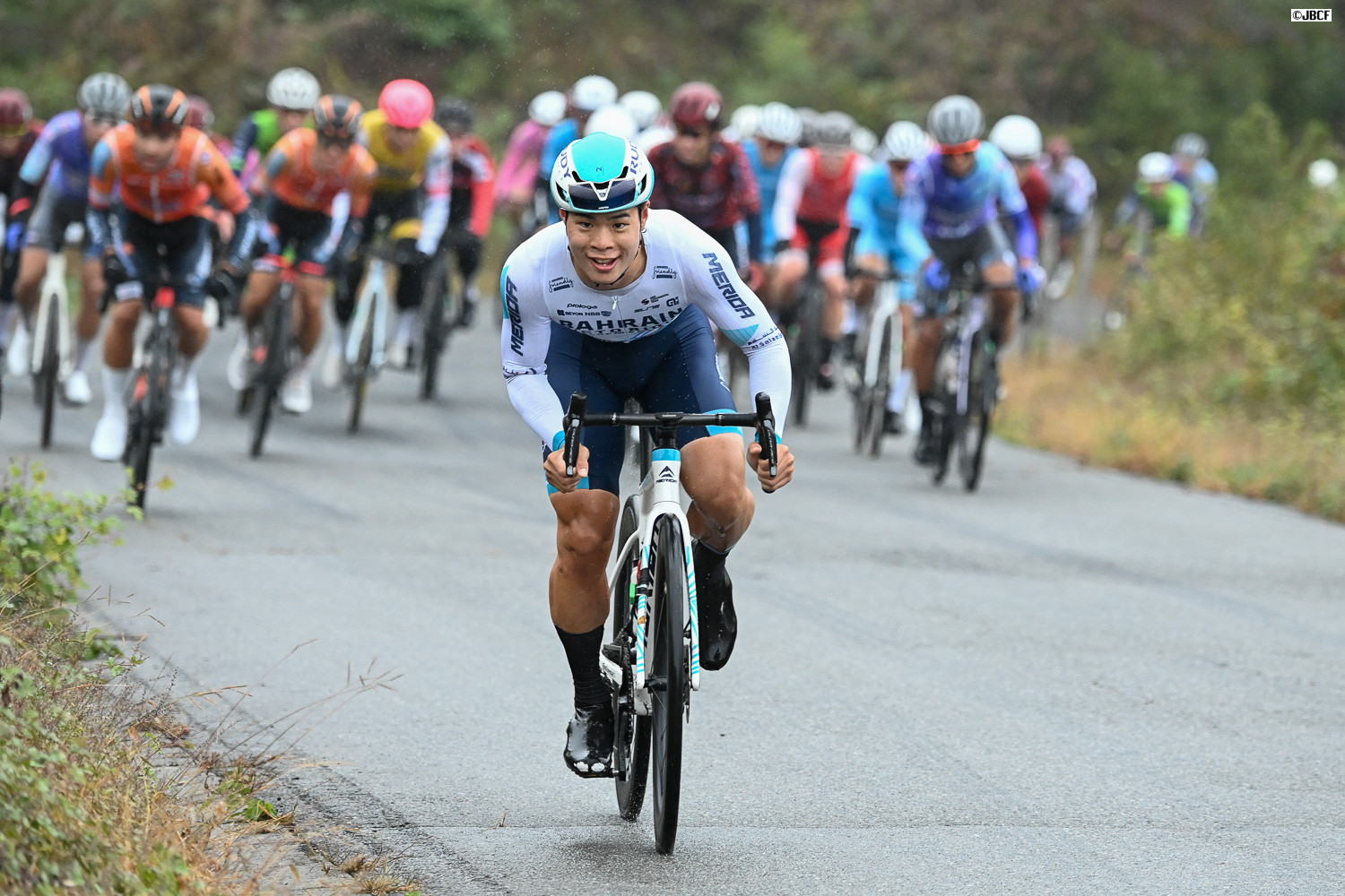 レース中盤、追走に飛び出す寺田吉騎(Bahrain victorious development team)