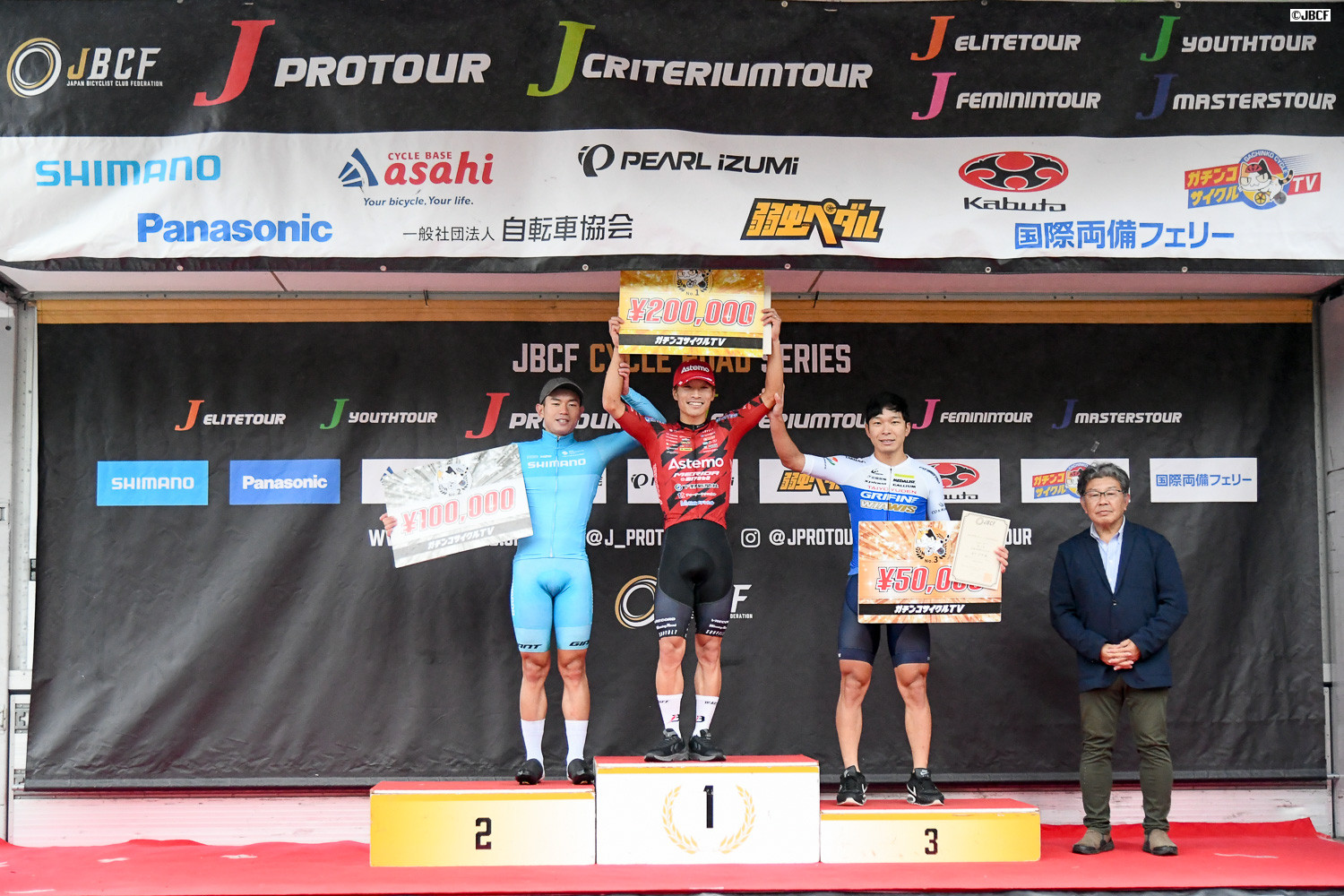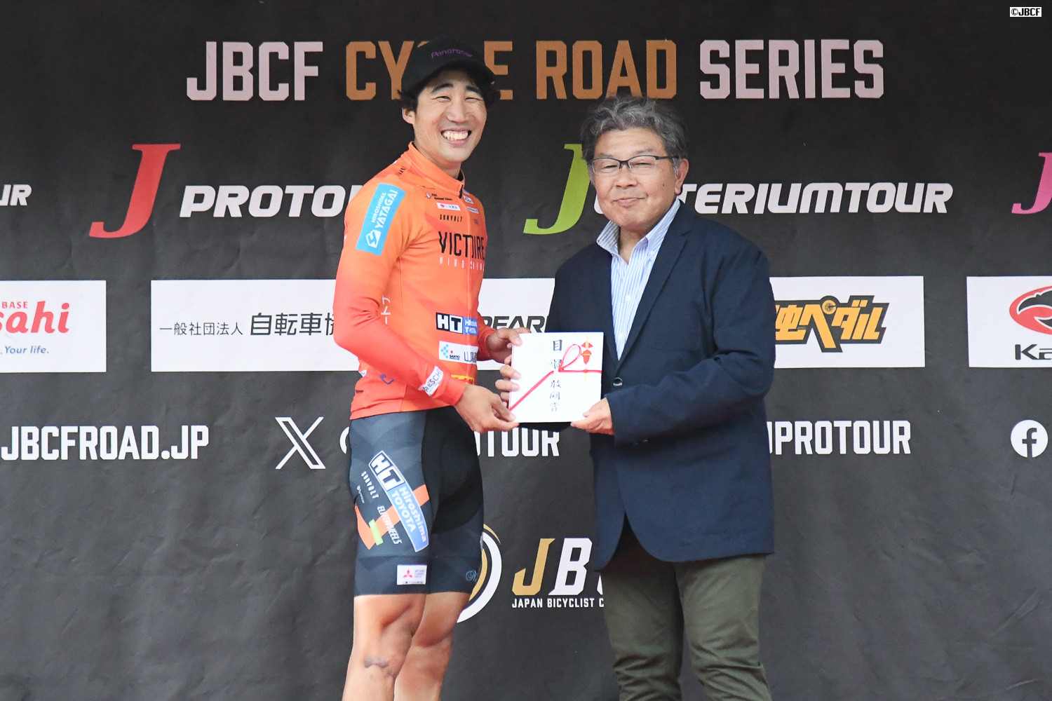 2025年Jプロツアーチームランキング1位 宇都宮ブリッツェン プレゼンターはJBCFの加地邦彦理事長