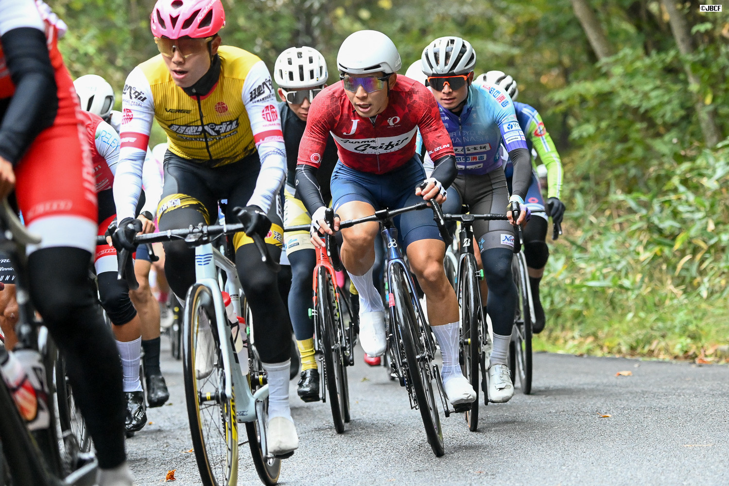 プロリーダージャージの金子宗平(群馬グリフィンレーシングチーム)は集団中ほどに位置取る