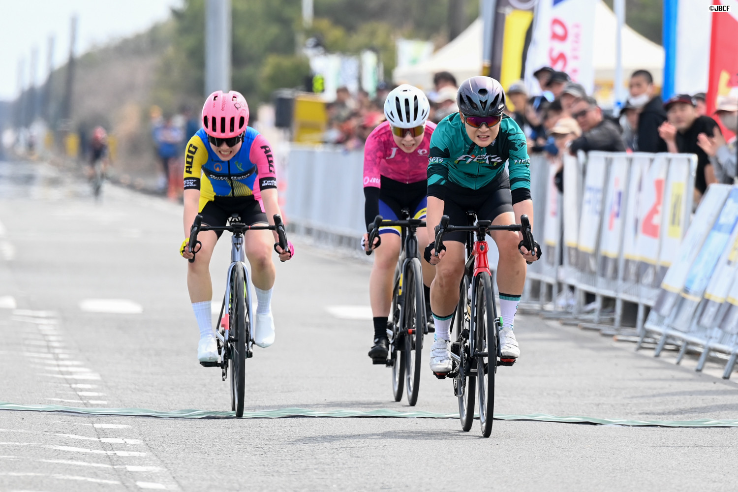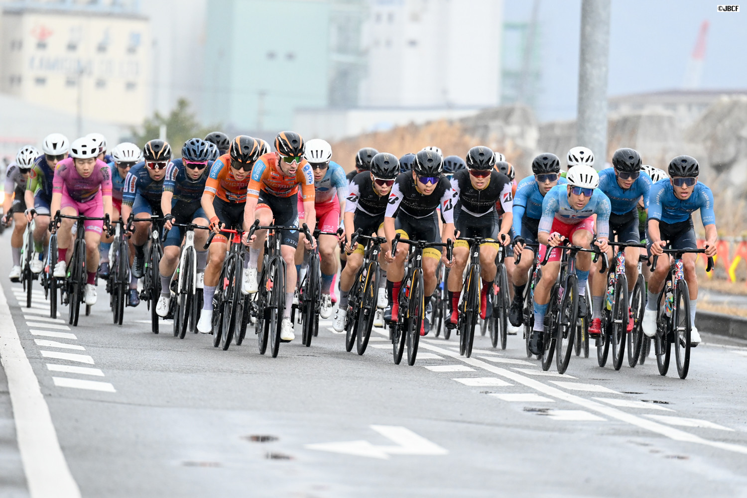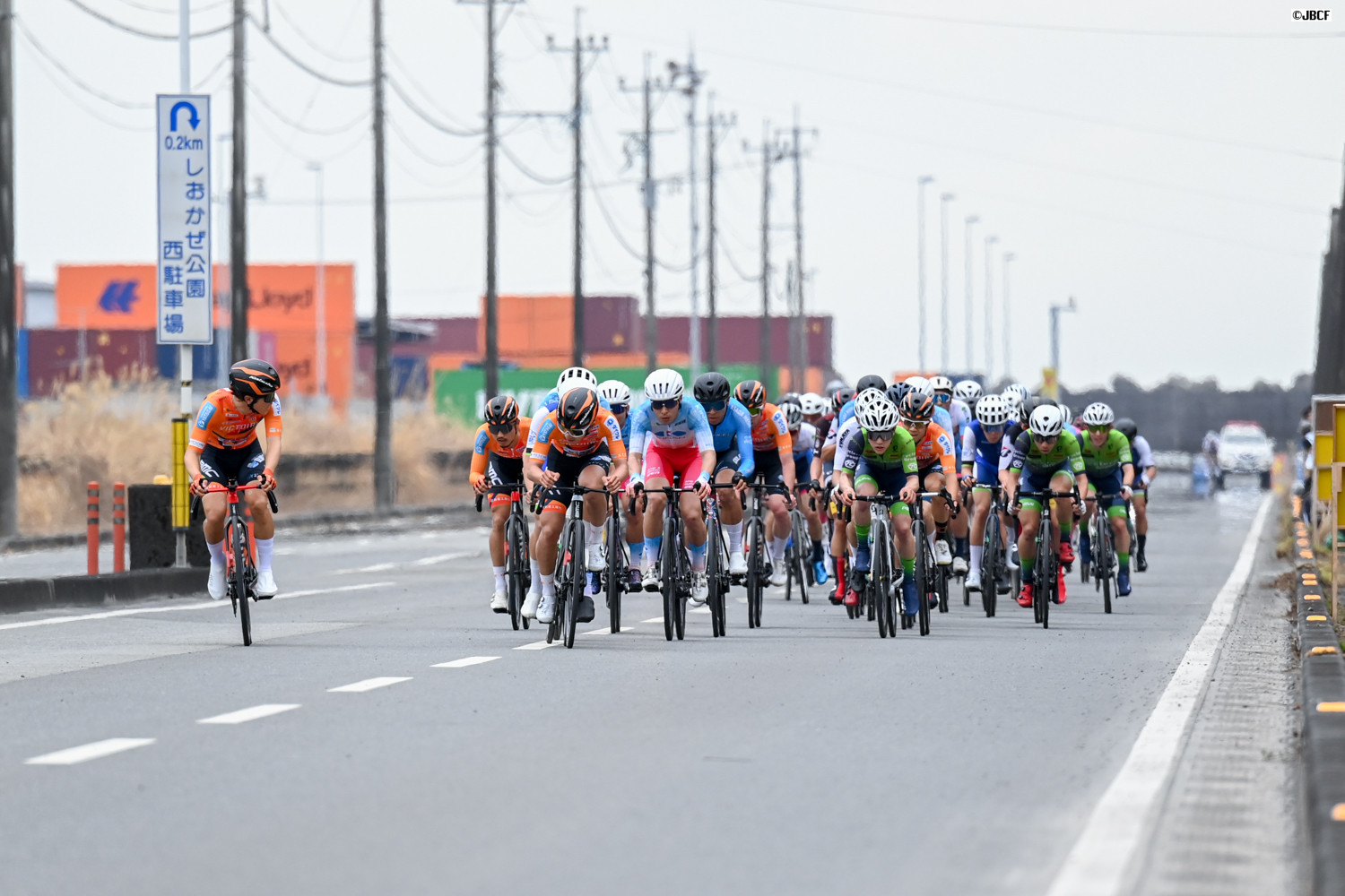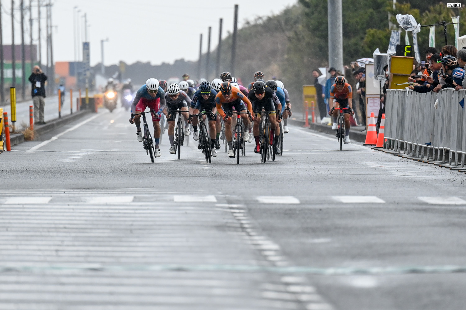 最終周回、ヴィクトワール広島、KINAN Racing Team、HPCJC BRIDGESTONE-ANCHOR、CIEL BLEU KANOYAなどがスプリント勝負に向けて隊列を組む