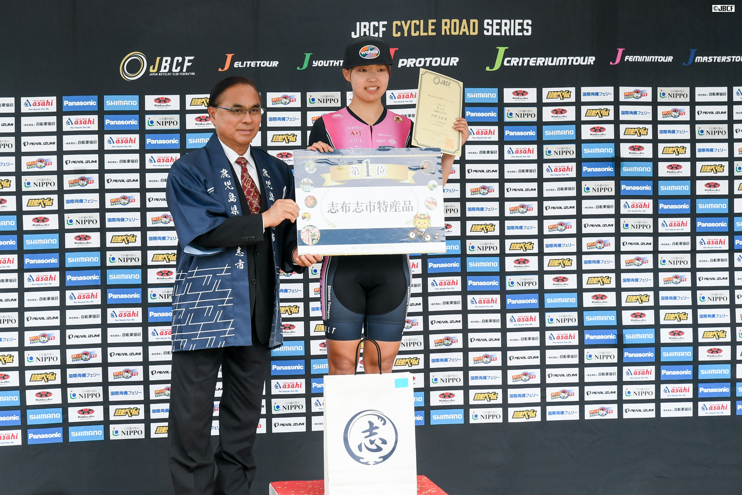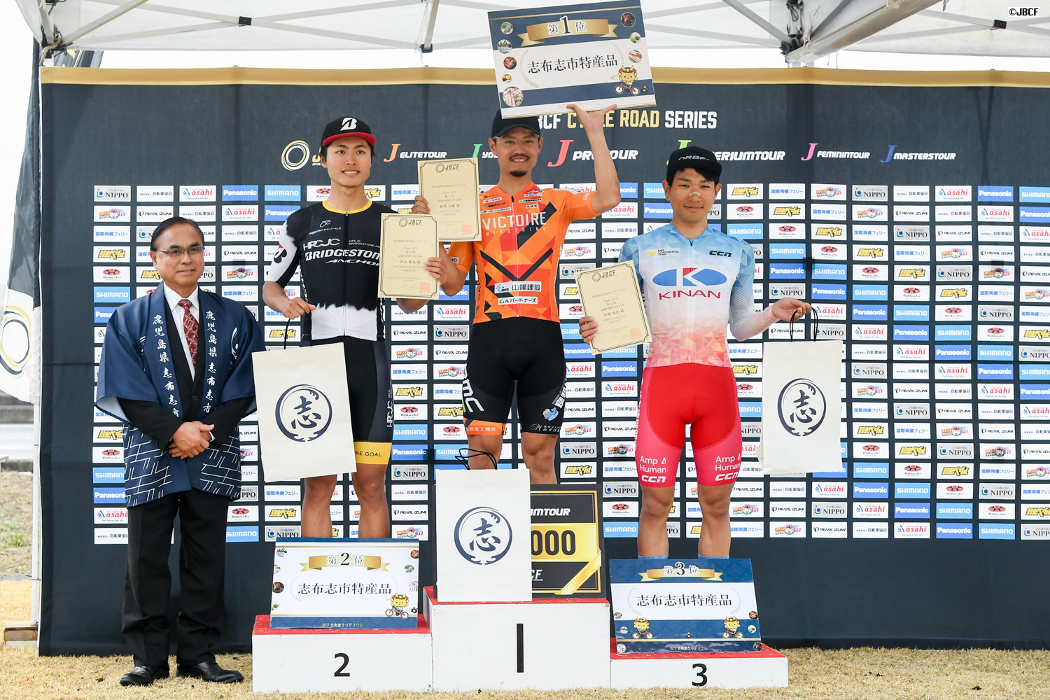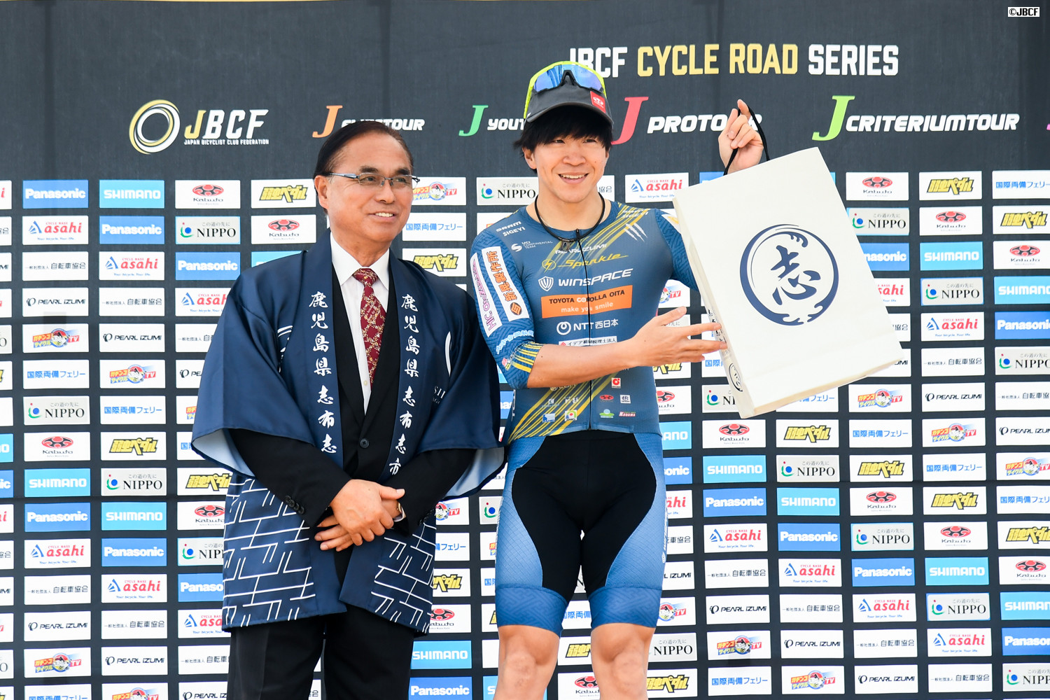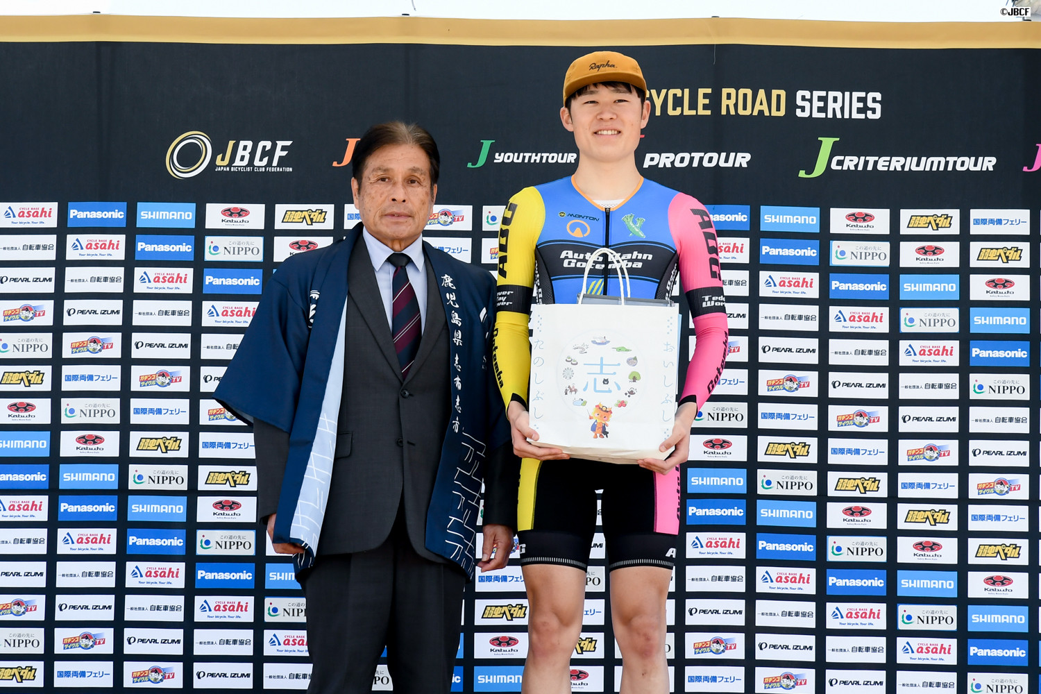鹿児島賞は鹿屋体育大学出身の黒枝士揮(Sparkle Oita Racing Team)が獲得。プレゼンターは志布志市の下平晴行市長