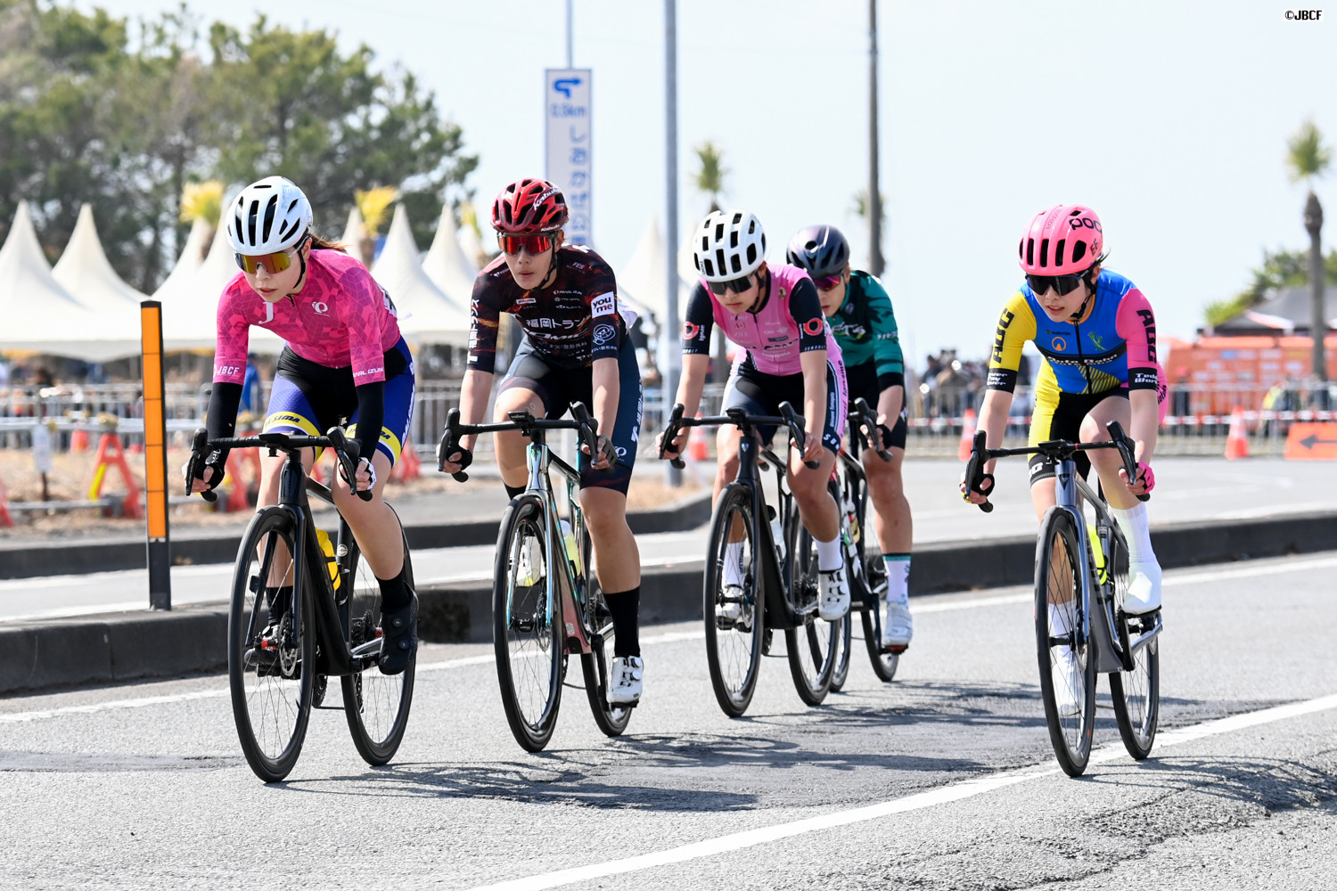 F 序盤はフェミニンリーダージャージの林優希 (なるしまフレンドレーシングチーム)がリード