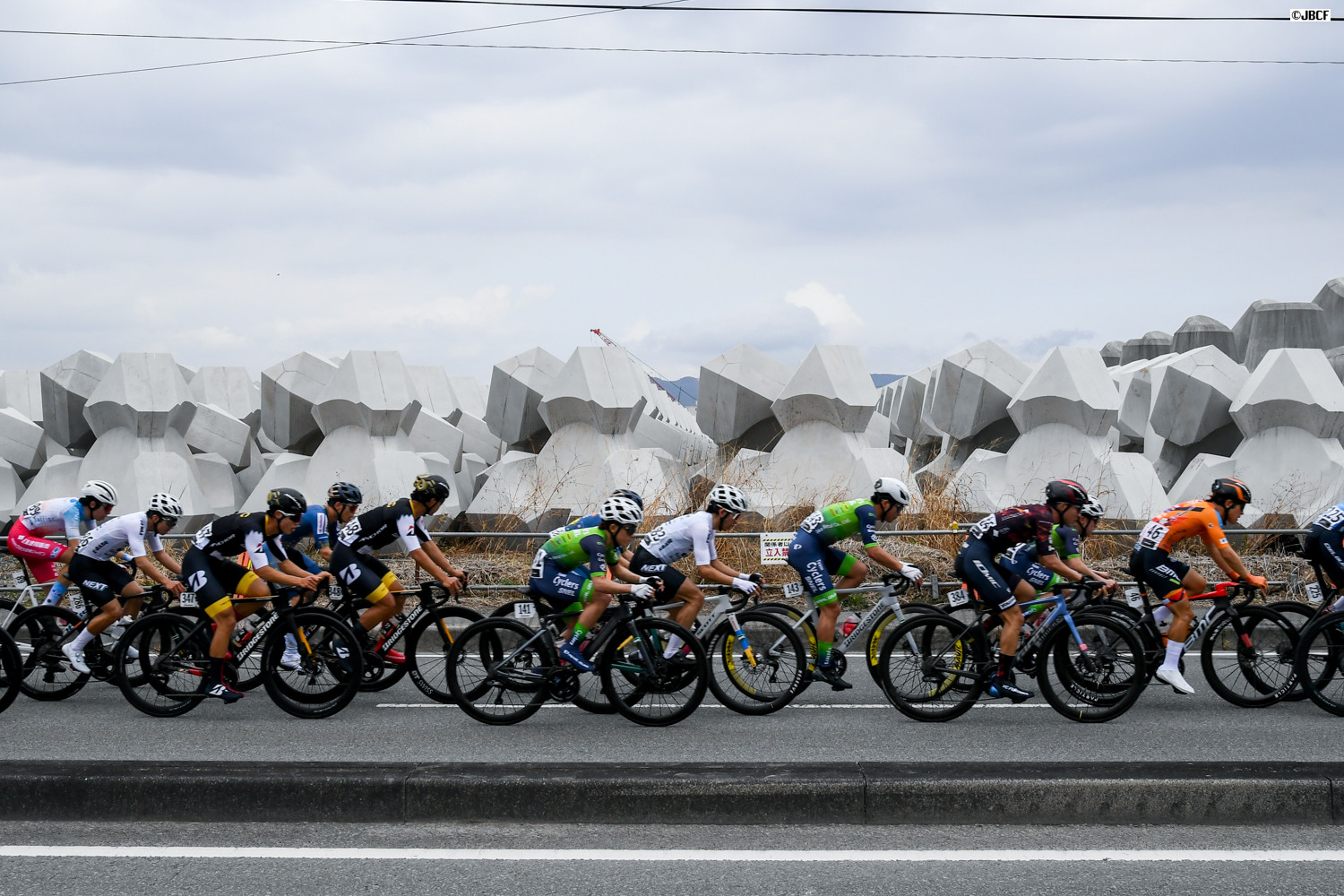 コース沿いに整然と並ぶ巨大な消波ブロック
