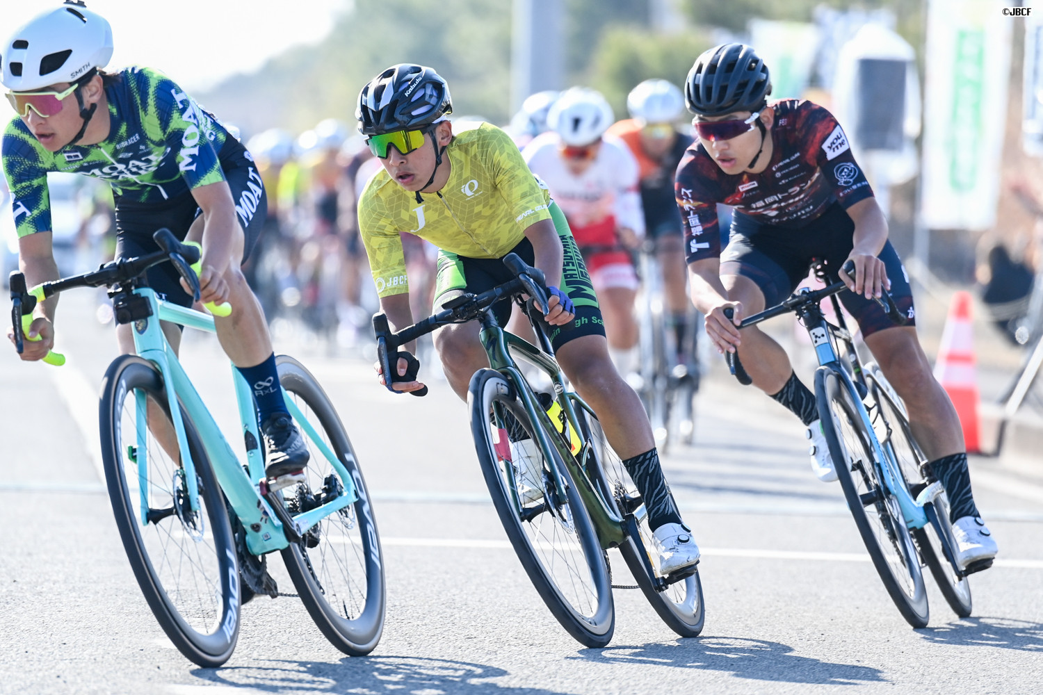 チームメイトのリードアウトから孫崎大樹(ヴィクトワール広島)がスプリントの先頭に出る