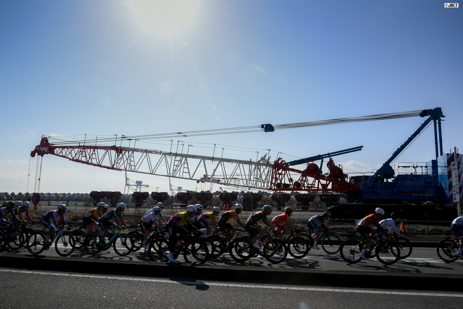 E1 港湾作業用の大型重機の前を集団が駆け抜ける