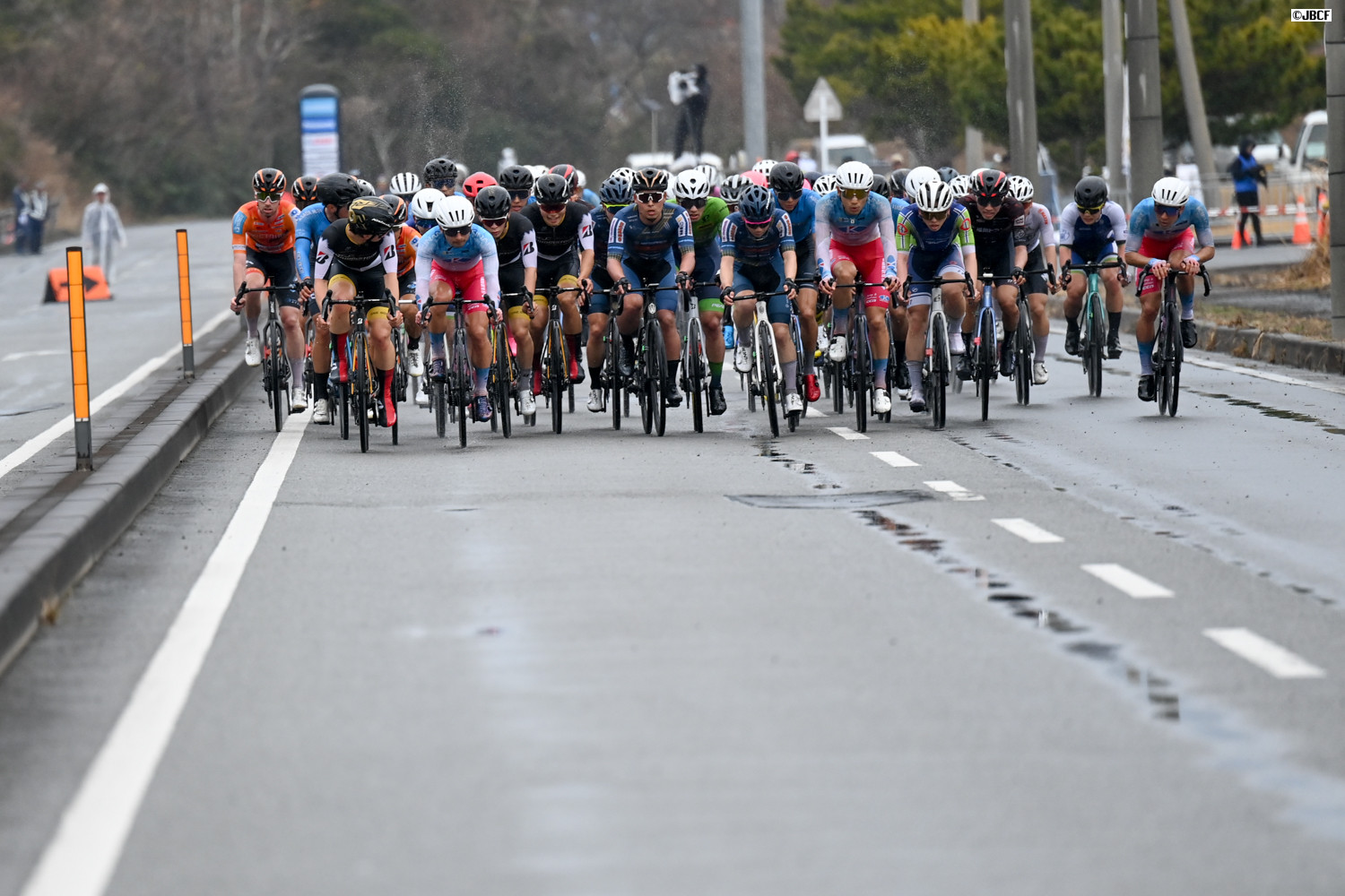 レース後半に降りはじめた雨が路面を濡らし、集団はペースダウン