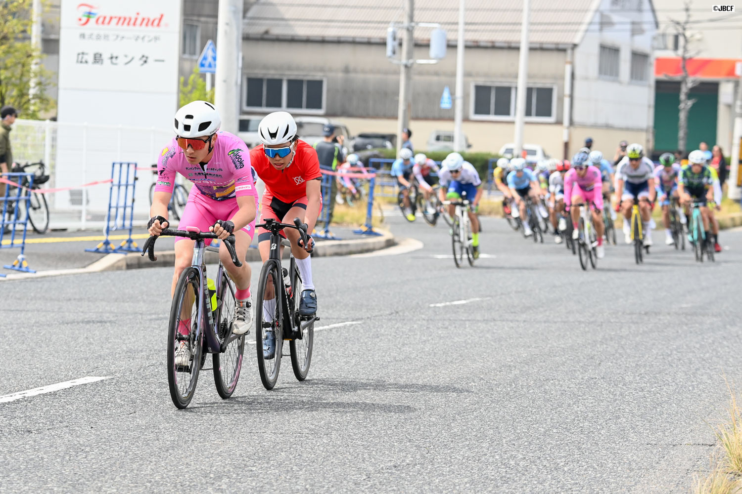 ヴィクトワール広島とKINAN Racing Teamが集団前方を占める