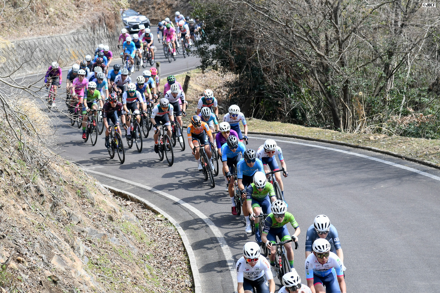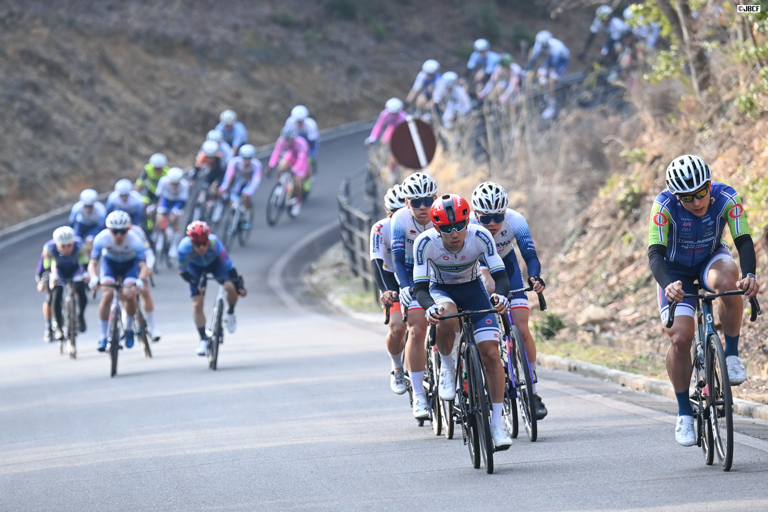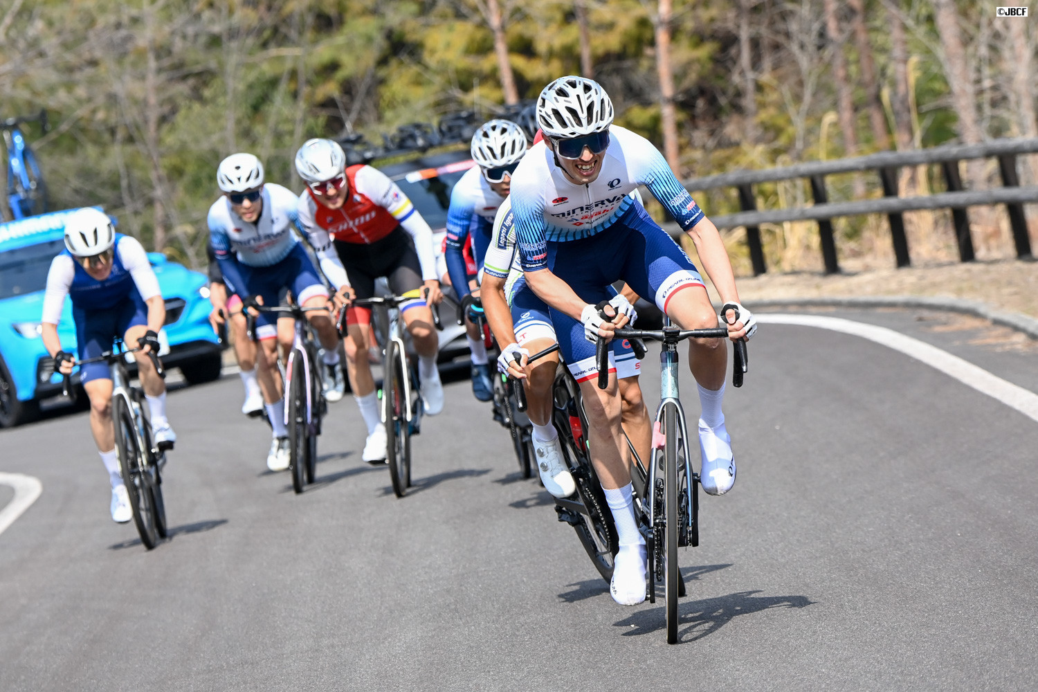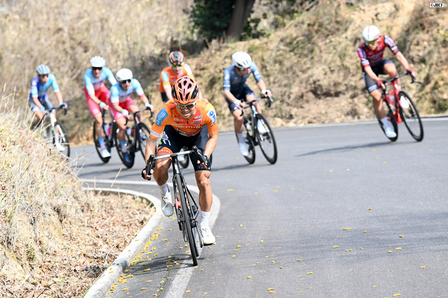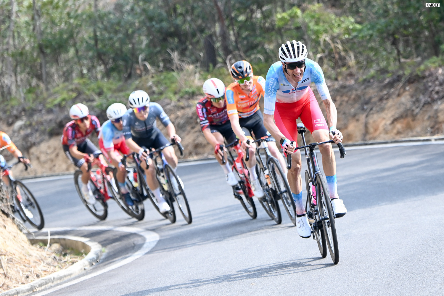最終周回、登り頂上付近でエリオット・シュルツ(ヴィクトワール広島)がアタック